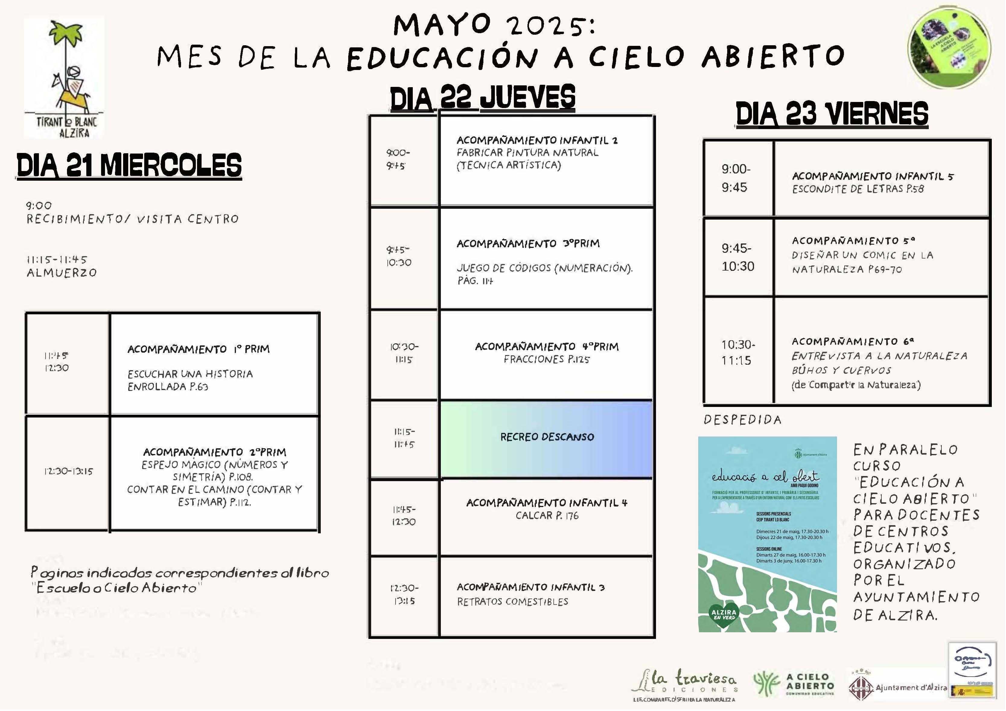 Este acompañamiento docente se complementa con el curso «Educación a Cielo Abierto», que organiza Ayuntamiento de Alzira, en esos mismos día